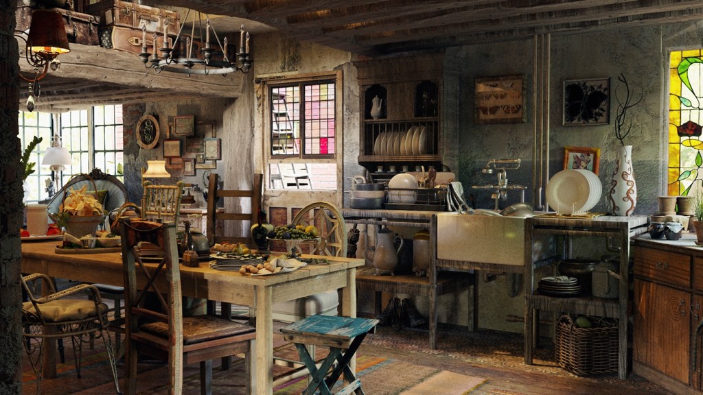 loveLoveLOVE the Weasley kitchen! Molly is a super powerful witch– and Ginny gets it from her! i mean seriously, she runs dozens of household spells all at once and you know they’re occupy some part of her mind, because when she is disturbed at the boys’ arrival in book two (flying car) all the spells come to halt!!! i think the Weasley kitchen is a very handy design. everything is right there and you can see most everything right away! unless you are Mr Weasley (or Hub) who cannot find anything for looking. although Mr Weasley can find HIS stuff in his old workshop, and Hub cannot find anything in his garage!!! ahahahaheeheehee!!! ….and not very many ordinary peeps, including this half blood, keep wrought iron collections. π β€ karenadair