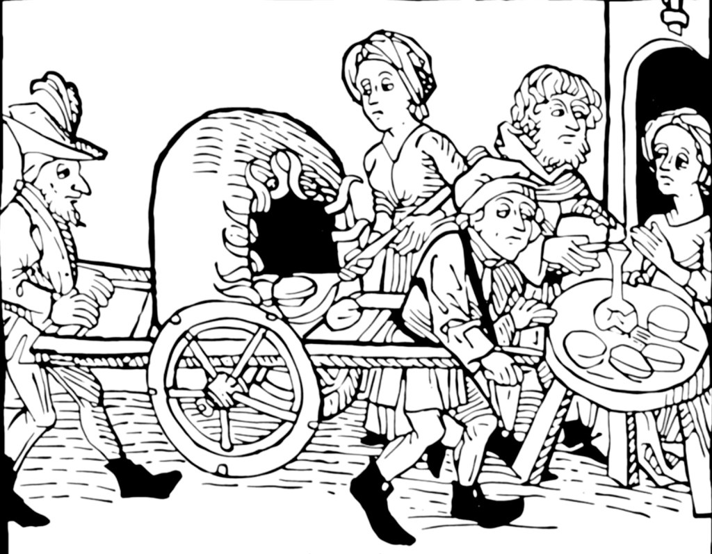 It got to a point at which I was really liking some recipes (or had created them) and really wanted to save them. I started putting together my own cookbook to keep in the kitchen. (Including woodcuts of medieval baking and cooking, of course!) The upcoming list I’ve at least managed to center mostly around Halloween, Thanksgiving, Christmas, and New Year’s.