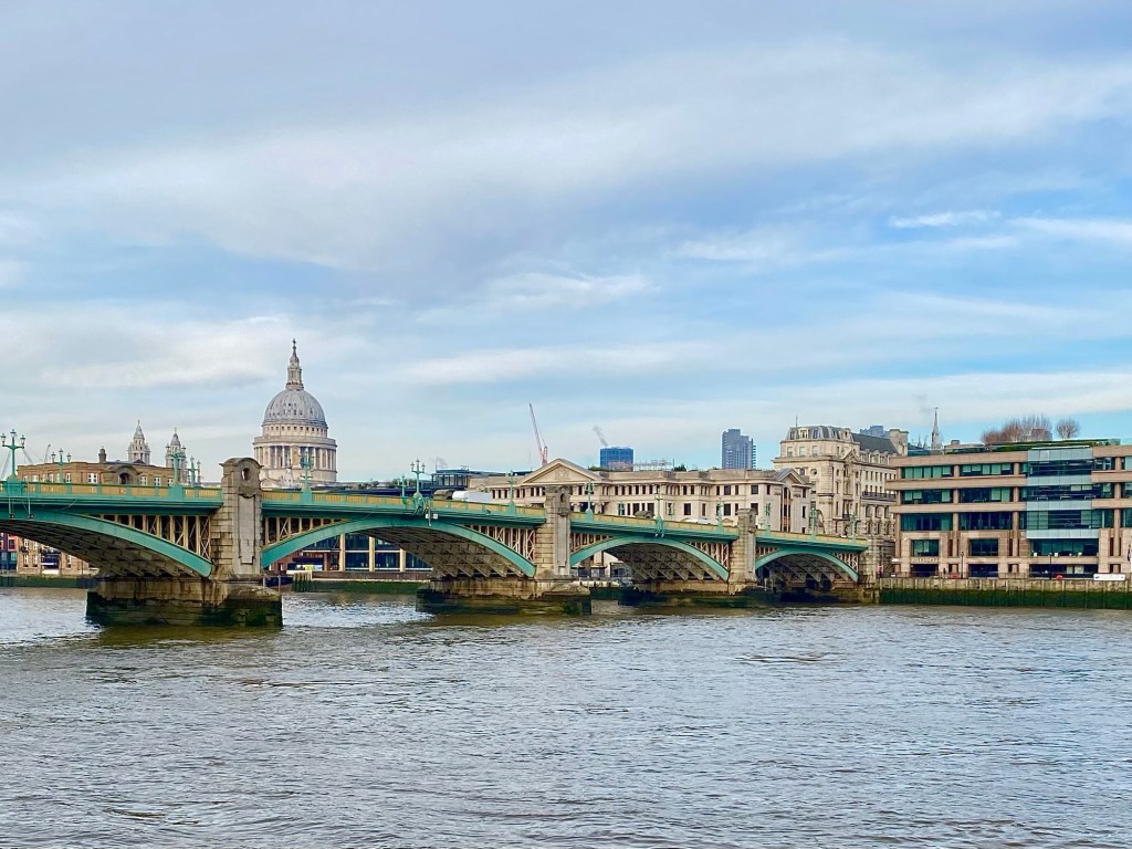 Looking across The Thames down by the hotel entrance, about noon today. (That’s St. Paul’s Cathedral.)