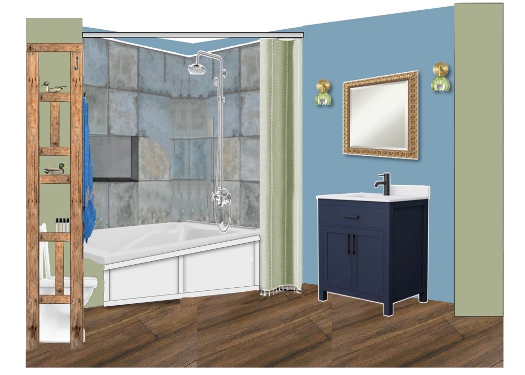 I’d planned the new bathroom for months. I carefully chose the shower curtain, the floor planks, the mirror, the towels, the rug, the sconces, the art, the 36×60 deep-soak tub, the old-timey shower/tap … and the tile.